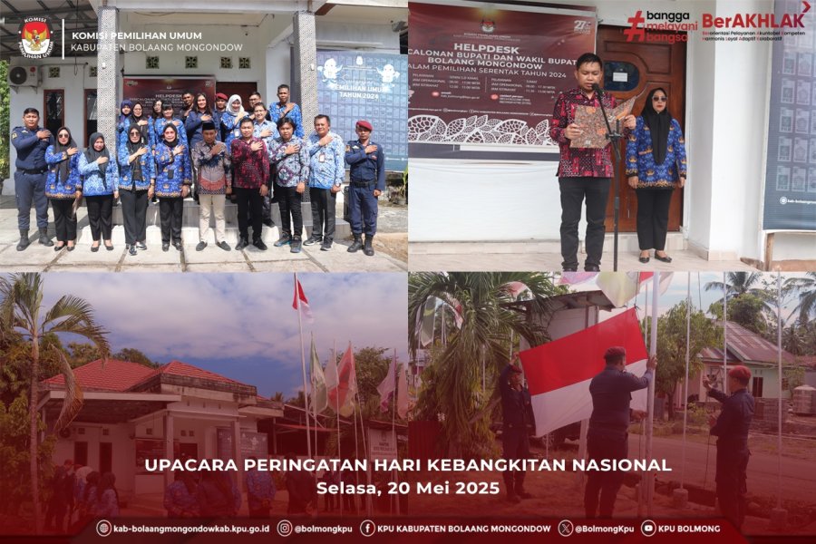 Lolak, https://kab-bolaangmongondow.kpu.go.id/ - KPU Kabupaten Bolaang Mongondow menggelar Upacara Peringatan Hari Kebangkitan Nasional yang ke 117 dengan tema “Bangkit Bersama Wujudkan Indonesia Kuat”, yang diikuti oleh jajaran pejabat dan pegawai di lingkungan KPU Kabupaten Bolaang Mongondow. Kegiatan ini merupakan tindak lanjut Surat Dinas Sekjen KPU RI Nomor 1703/PK.02.1-SD/04/2025 tertanggal 16 Mei 2025 perihal Penyelenggaraan Upacara Peringatan Hari Kebangkitan Nasional ke-117 Tahun 2025.