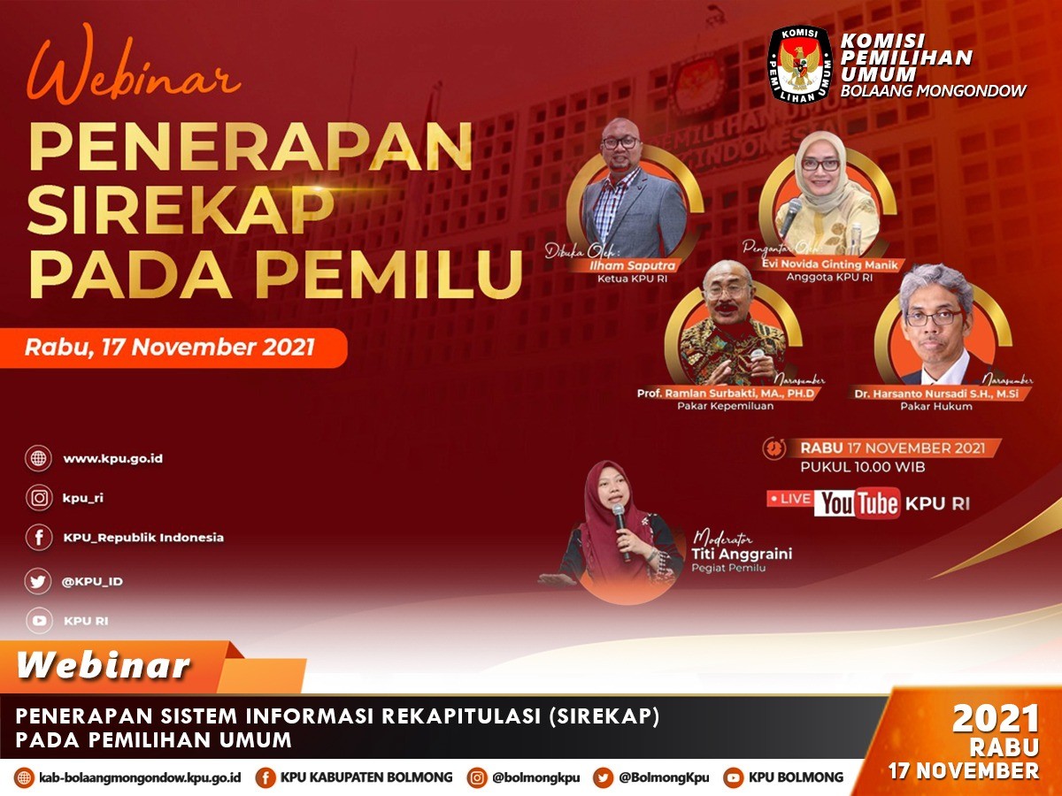 Lolak - Salah satu indikator suksesnya penyelenggaraan Pemilu dalam suatu negara yaitu terwujudnya aspek transparansi semua informasi tahapan Pemilu. Demi mewujudkan aspek transparansi ini, Komisi Pemilihan Umum (KPU) terus berupaya melakukan berbagai inovasi agar semua informasi proses tahapan Pemilu dapat diakses oleh semua lapisan masyarakat, salah satunya dengan penggunaan aplikasi SIREKAP (Sistem Informasi Rekapitulasi) pada tahapan rekapitulasi penghitungan perolehan suara Pilkada Serentak Tahun 2020.