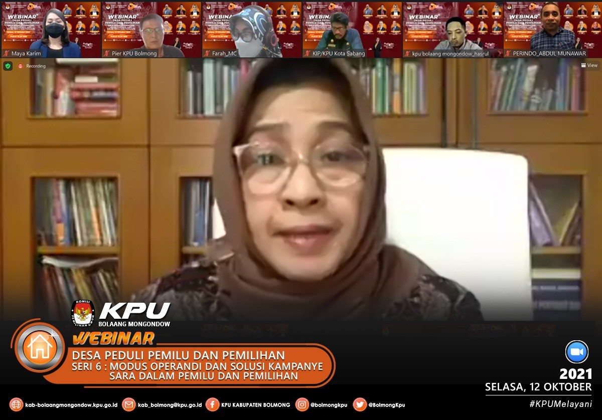 WEBINAR DP3 SERI KE- 6, KPU BAHAS MODUS OPERANDI DAN SOLUSI KAMPANYE SARA