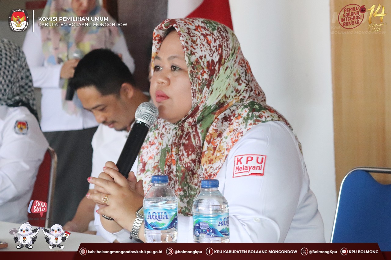 Kegiatan kemudian dibuka oleh Ketua KPU Bolmong, Lilik Mahmudah, dalam sambutannya menegaskan bahwa kemajuan teknologi informasi saat ini telah banyak dimanfaatkan oleh KPU untuk membantu dan mendukung penyelenggaraan Pemilu 2024, termasuk juga aplikasi SITAB ini yang bertujuan untuk mempermudah dalam penyampaian realisasi anggaran dan pelaporan pertanggungjawaban keuangan Pemilu serentak Tahun 2024 di tingkat PPK dan PPS.